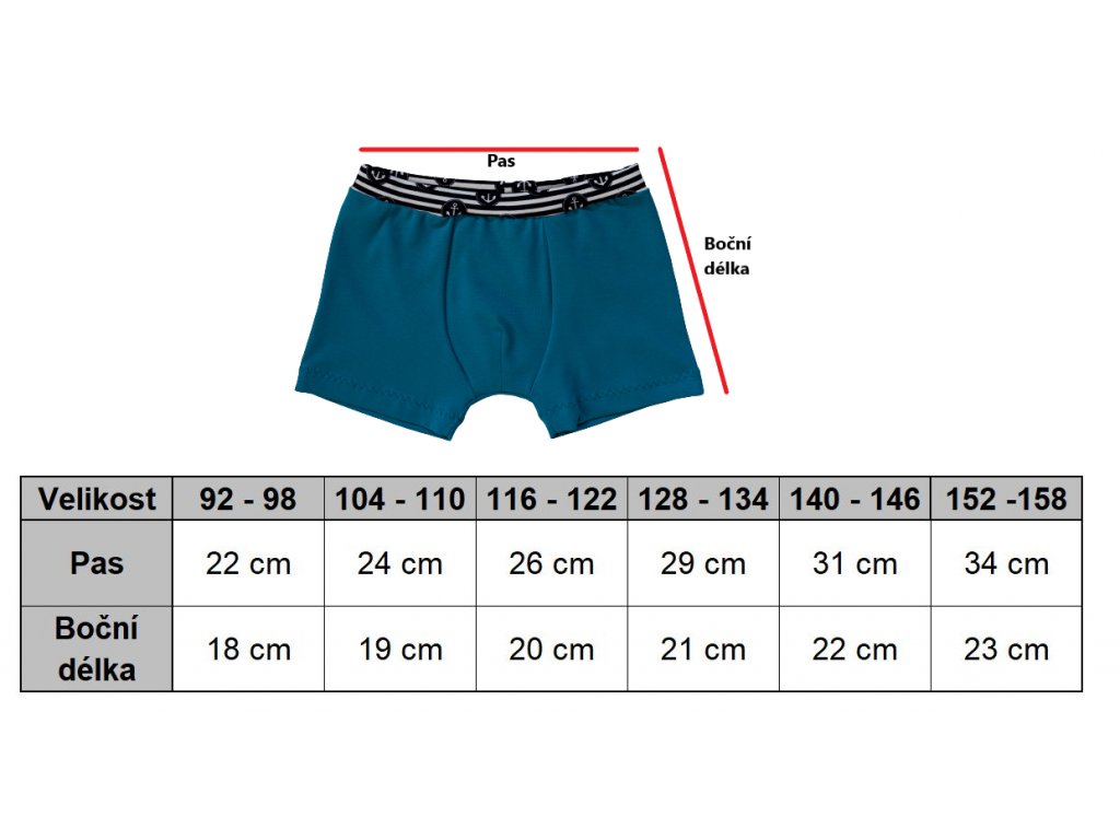 - Orientační velikosti jsou uvedené na fotografii v tabulce u produktu a foto s návodem, kde boxerky změřit.